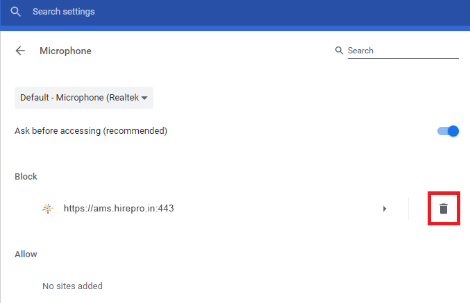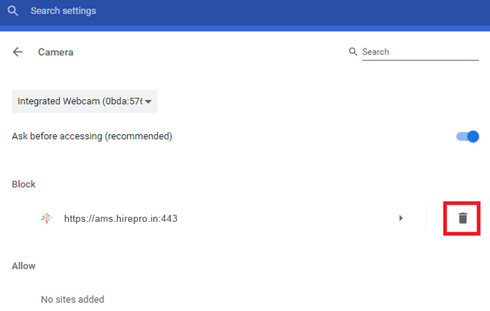 Please make sure that your Webcam & Microphone are connected properly, Also make sure that you allow access to your camera & mic as shown below.