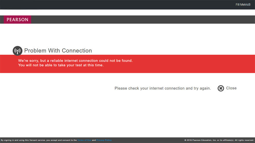 - If you are unable to fix the issue immediately, please try taking the test at a later time.